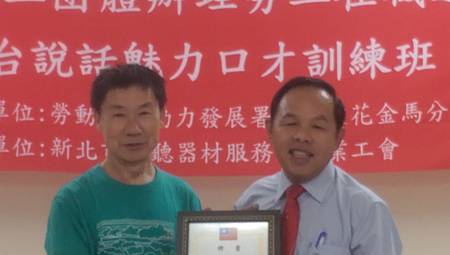 新北市視聽器材職業工會,舉辦勞動力發展署,「舞台說話魅力口才訓練」培訓課程,第七週課程已開始讓學員親身體驗上台演講的訓練,在經過期幾周的口才基本訓練後,本週上台的每一位學員也都能理解上台應掌握的舞台說話得各項技巧,從每位學員專注的演練中便能體會到學員在演講前都有做了充分準備,如上台颱風,聲音的變化和肢體動作來融入表達技巧,每位也都漸入佳境.